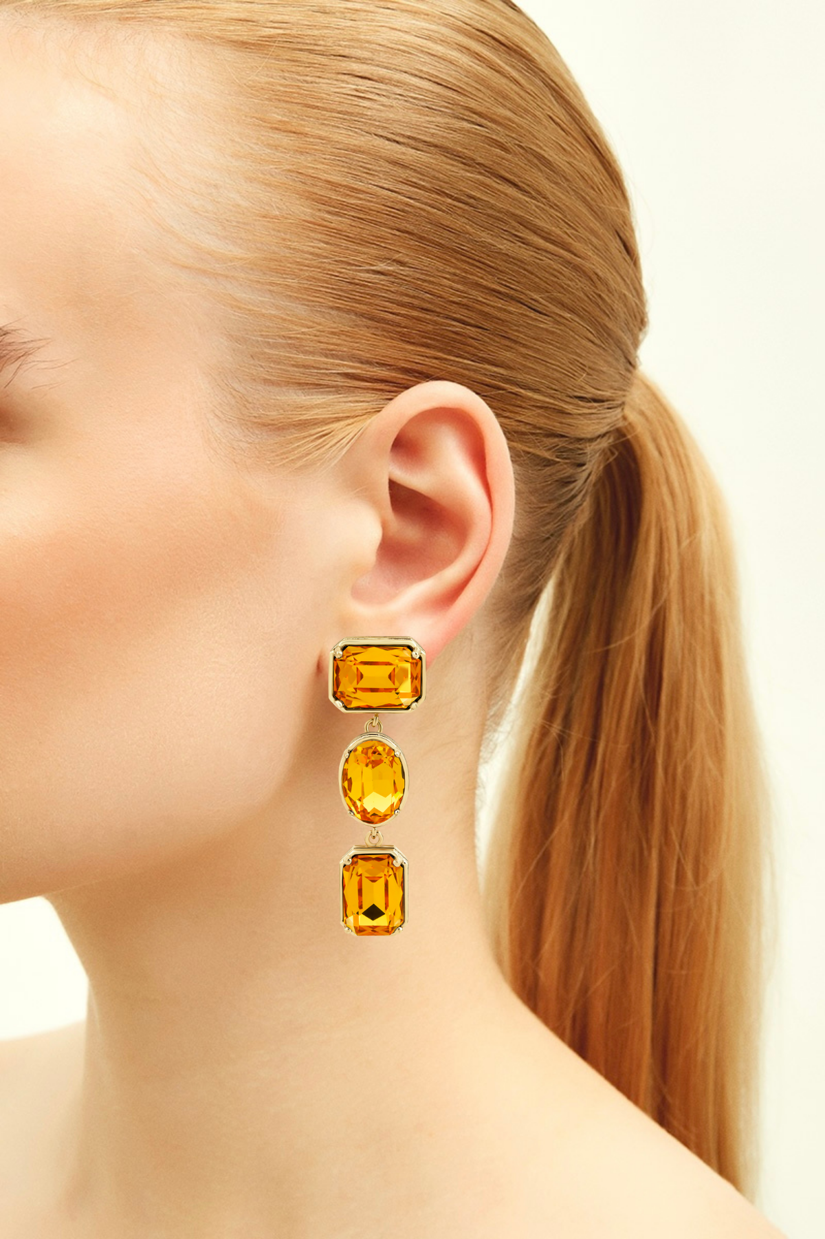 Ninon Melodia Duo Yellow Crystal Embellished Drop Earrings