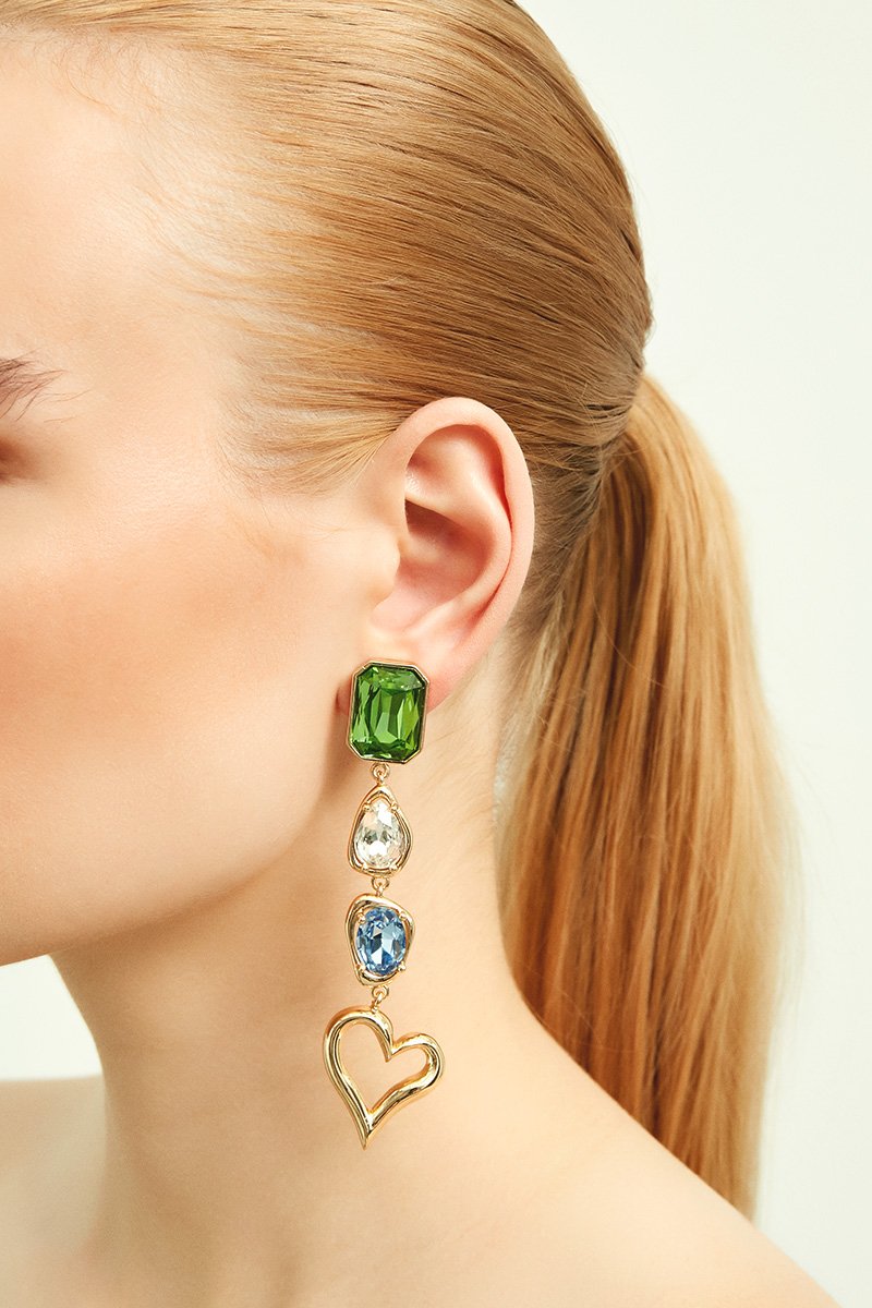 Sevda in Istanbul Long Earrings with Green Crystal