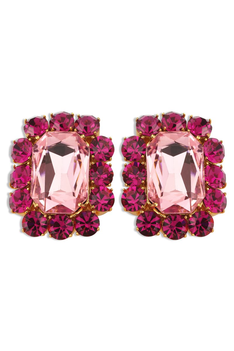 Ninon Square Fuchsia & Rose Macaron Earrings