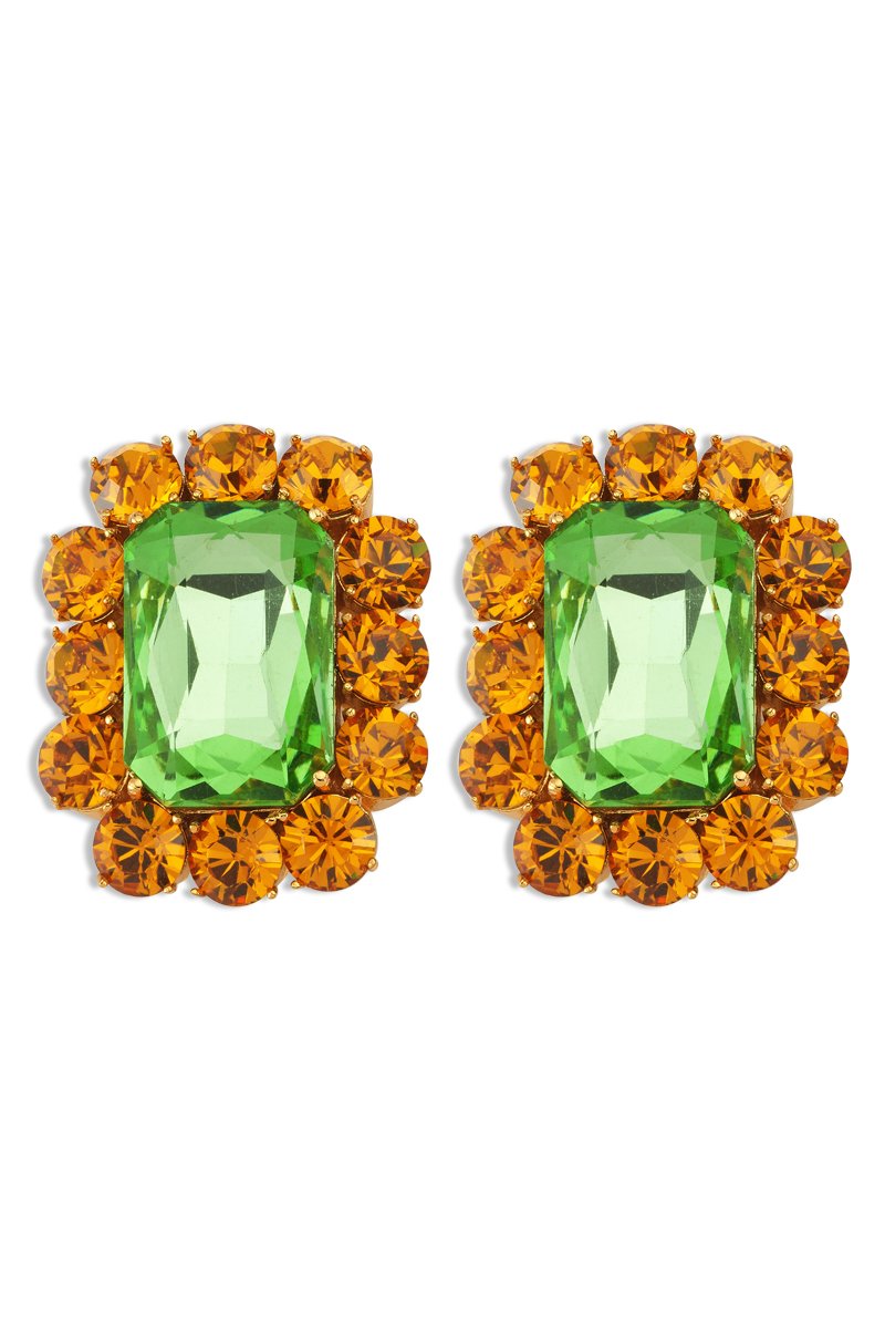 Ninon Square Mandarin & Grass Green Earrings
