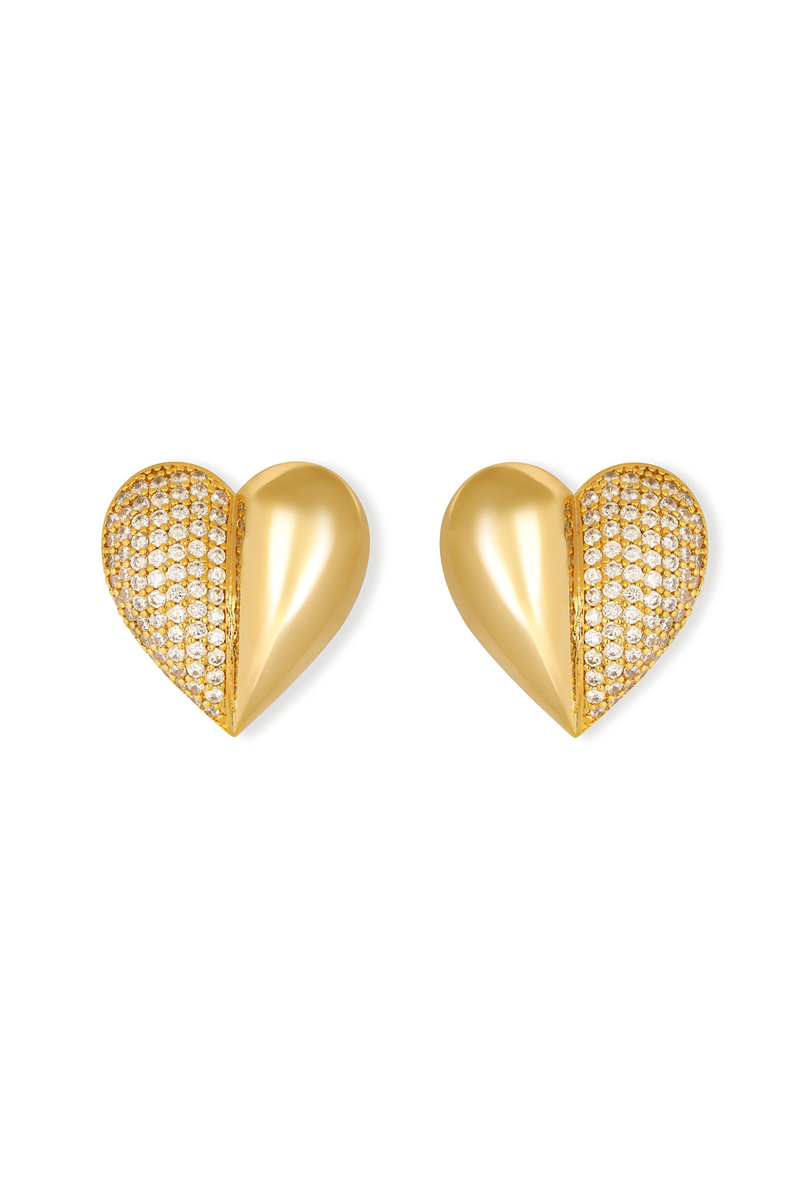 Ninon Love Yourself Medium Heart Gold Plated Zirconia Embellished Crystal Earrings
